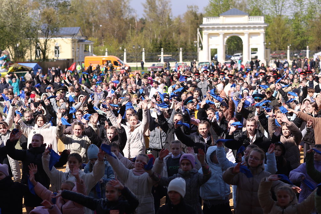 Флешмоб проходил под знаменитую песню «Синий платочек».На главной площадке Усадьбы Гребнево в Московской области собралось более 1 500 тысяч человек, среди которых представители Республики Татарстан и Бурятии, Тверской, Пензенской, Курской, Смоленской областей. Акцию поддержали и за пределами России – в Бельгии, Франции, Мозамбике, Кубе, Румынии, Мьянме, Республике Абхазии, Республике Корея, Марокко, Монголии, Египте, Тунисе, Индонезии.